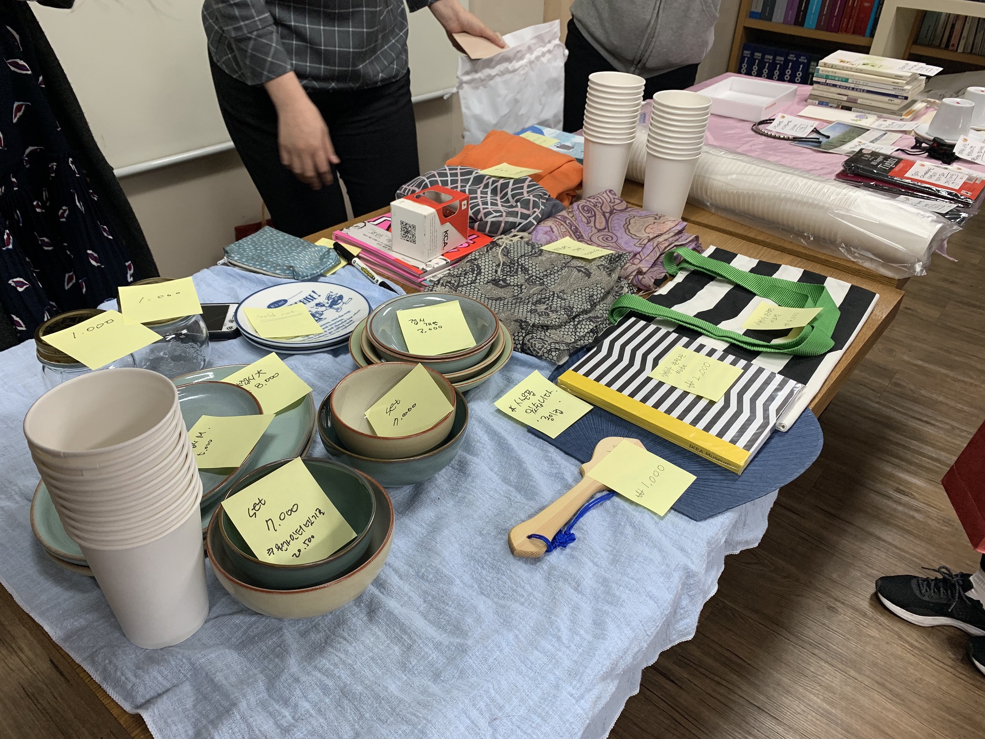 본부별로 마켓 물품을 세팅하고, 기부금에 보탤 입장료 상품까지 준비했답니다!