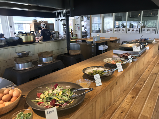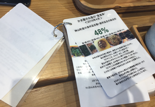 가마야의 메뉴는 매일 달라집니다. 수확하는 식재료를 과하지 않게 조리해서 내놓고, 약 2만원정도의 금액을 내면 뷔페식으로 덜어 먹을 수 있습니다. 그리고 식탁 위에서는 달마다 특정 식재료가 얼마나 소진되고 있는지를 볼 수 있었습니다.
