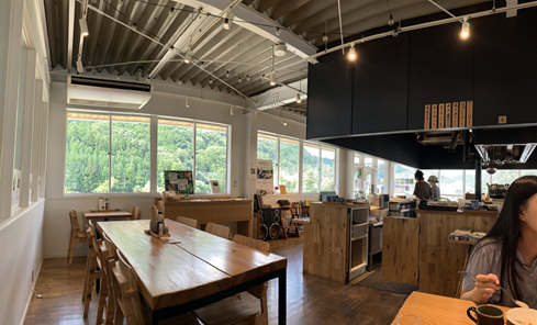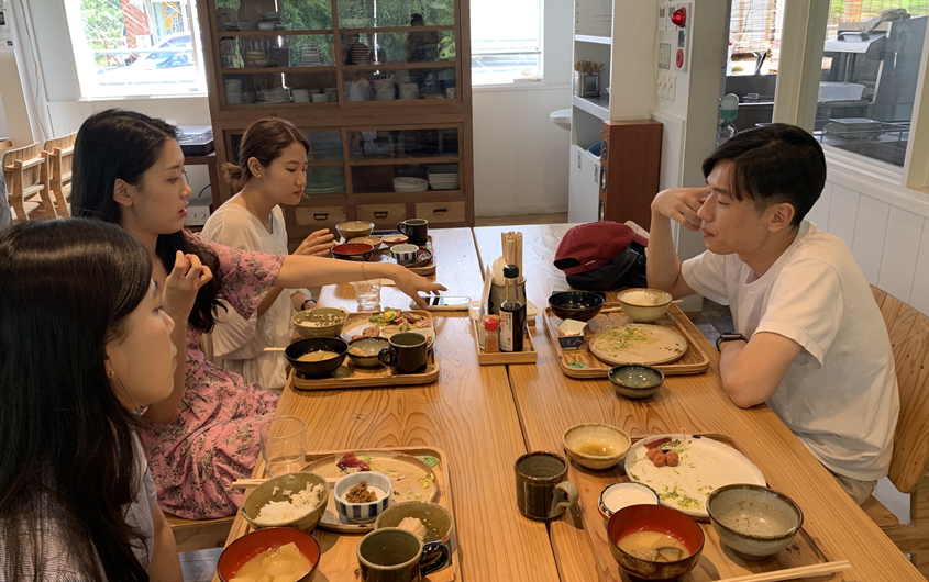 저희팀의 첫 식사는 ‘가마야’라는 카미야마 푸드 허브 프로젝트 식당이었는데요. 이 프로젝트는 카미야마 주민들로부터 청년들이 농사를 배워 마을의 생산력을 유지하고, 이 식재료를 이용하는 식당을 통해 소비를 촉진하는 선순환의 프로젝트였습니다.