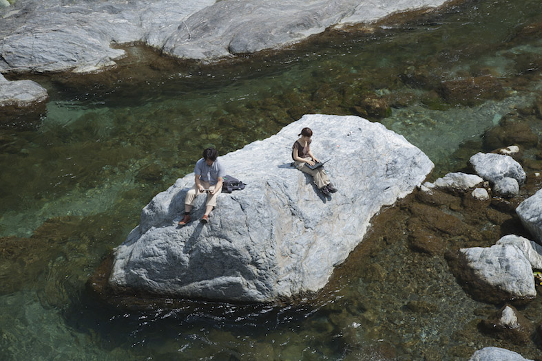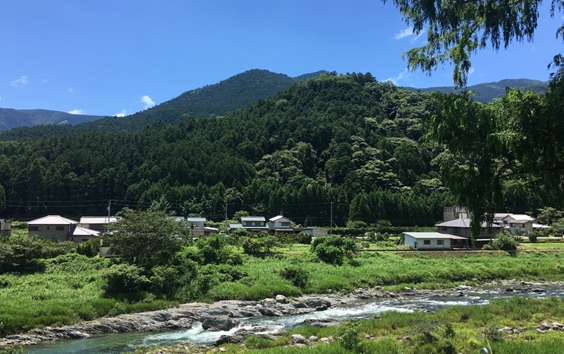 우리가 카미야마로 온 많은 이유들 중에 반절은 아마 이 숙소일 것입니다. 마루에 앉으면 눈 앞에 냇물이 흐르고 등 뒤로는 산에서 불어오는 바람이 스치는 곳.