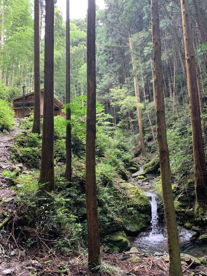 사우나를 할 생각에 들떠서 가이드 직원을 따라 산 속으로 향했습니다. 도착해보니 계곡물이 흐르는 옆 동산의 한쪽에 사우나가 떡하니 자리 잡고 있었는데요. 이 사우나는 삼나무로 만들어졌고, 주변도 온통 삼나무가 곧게 뻗어있었습니다. 사우나 근처에 가니 산림욕을 하는 것처럼 좋은 나무향기가 났습니다.