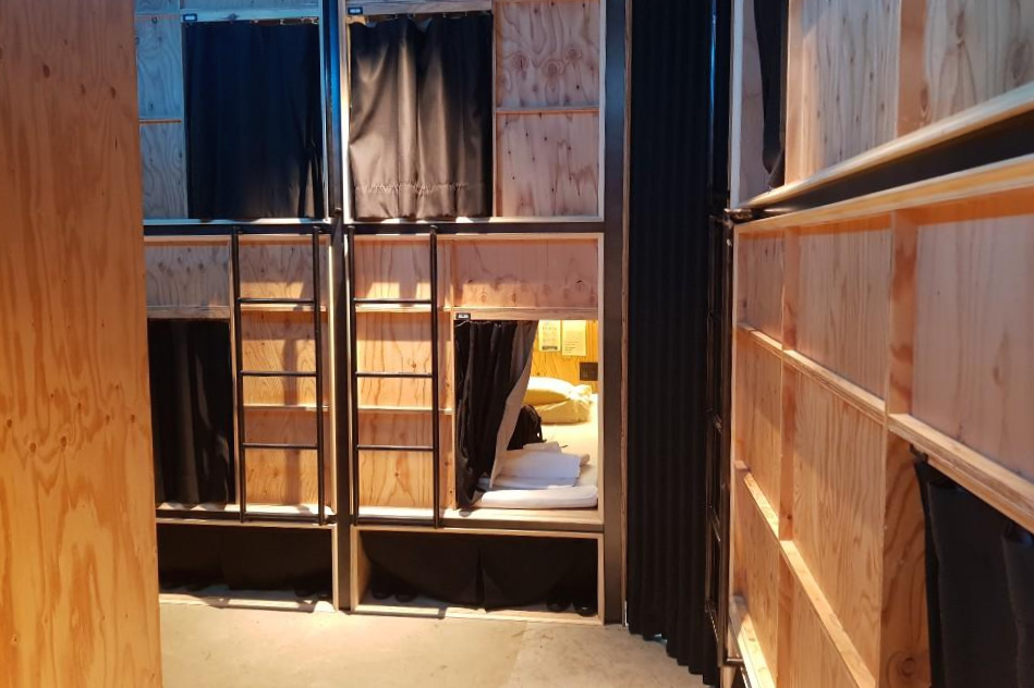 개별 휴식공간의 경우 180x120cm 규격의 캡슐 룸이 다수 배열되어 있었으나, 미로 형태의 동선 배치를 통해 각각의 방이 서로 마주 보는 것이 아닌, 100cm 내외의 공간을 두고 통로의 벽을 바라보게 함으로써 어느 정도 독립되어 있다는 느낌을 주도록 하였습니다. 한편, 여성 전용 층의 경우 별도의 룸이 없는 점을 보완하기 위해, 공용공간과 휴식공간 사이에 60~70cm가량의 수직 간격을 둠으로써 독립성이 보장되기도 합니다.