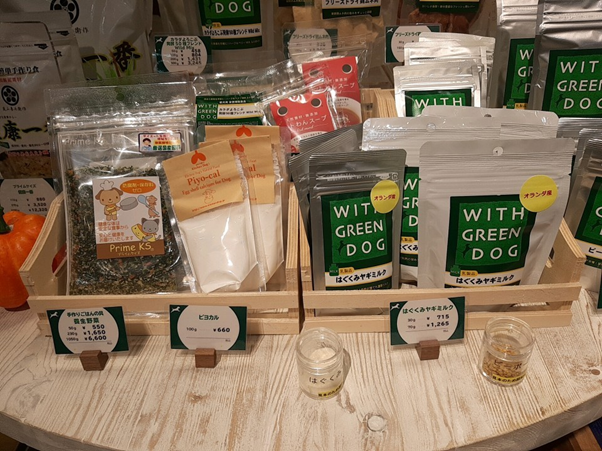 성분별로 분류된 반려견 사료를 직접 섞어서 사료를 만들 수 있다고 하는데요. 아쉽게도 저희가 갔을 때에는 사료를 만들 수 없었지만, 평소 사료를 만들거나, 유기농 사료를 직접 만들어 먹이거나 사 먹이는 사람들이 많다고 합니다.
