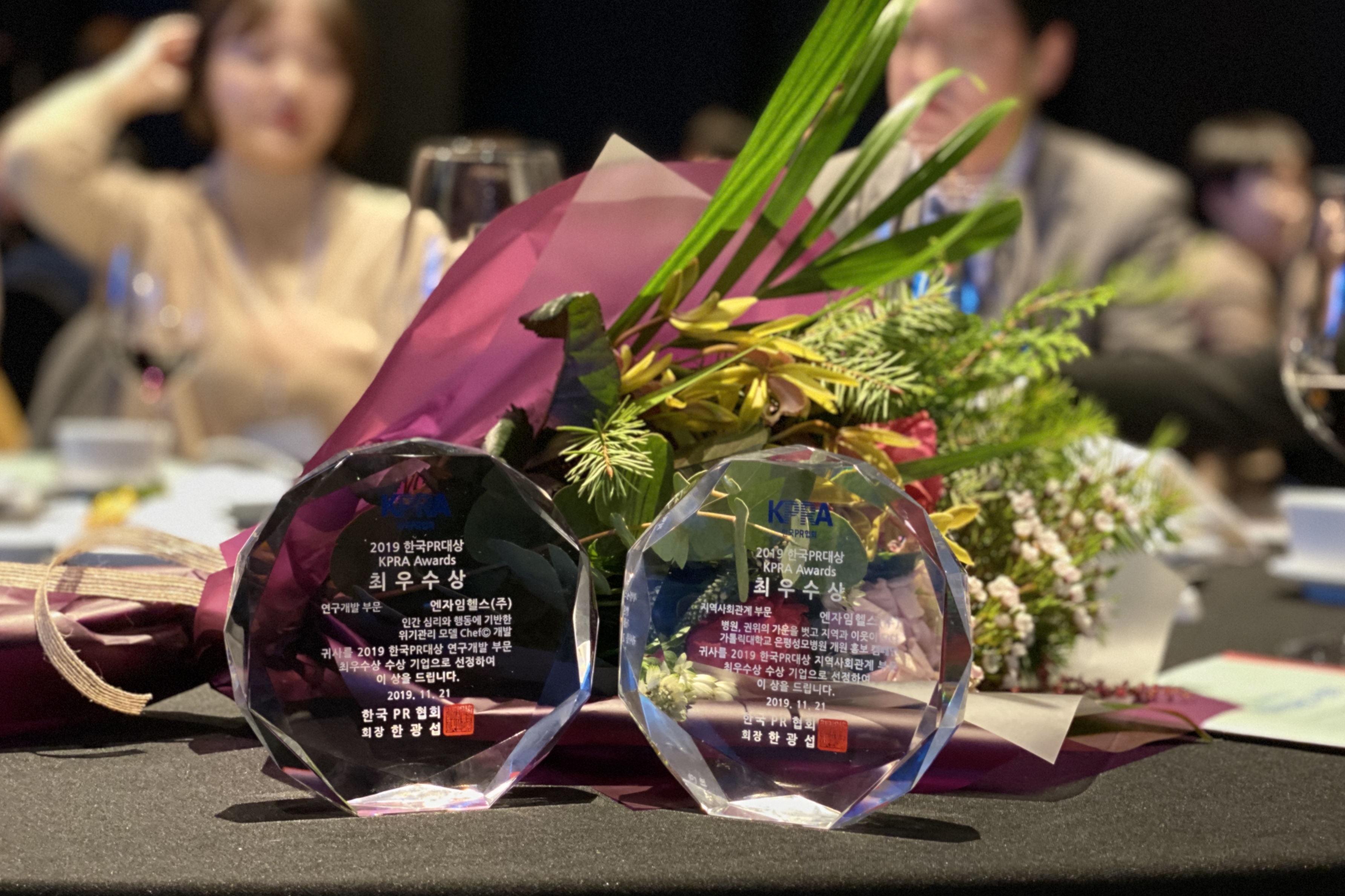 이 모든 노력 덕분에 엔자임헬스가 2019 한국PR대상에서 지역사회관계 부문과 연구개발 부문 등 무려 2개 부문에서 최우수상을 수상하는 영예를 안게 되었습니다!