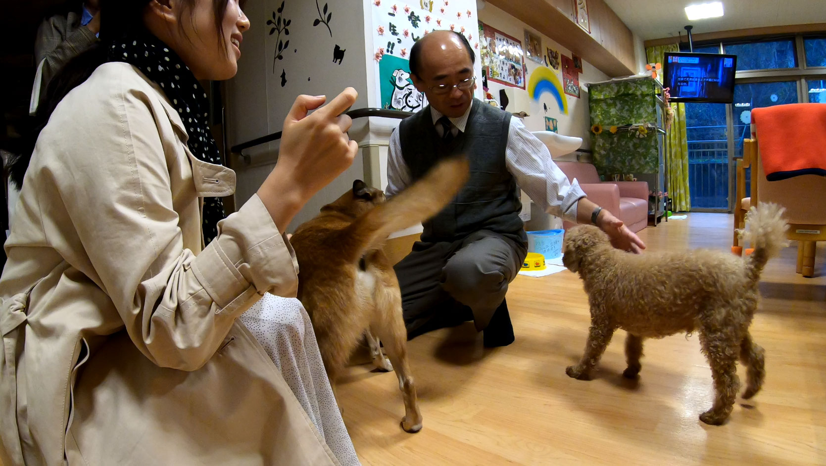 대부분의 요양원은 조용한 분위기인 경우가 많은데, 이곳은 요양실 내부 곳곳에서 귀여운 강아지들이 뛰어다녀서 매우 밝고 활기찬 분위기였습니다.
