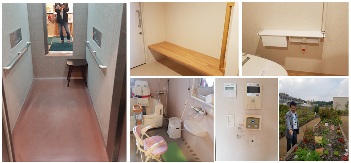 고령자 전용 공간인 만큼 편의 시설들은 신체적 기능을 고려해 세심하게 배려되어 있으며, 치매 환자들을 위한 독립 공간도 운영 중에 있었습니다. 현재 수요가 많아 6개월은 기다려야 한다고 합니다. 장례 시설도 갖추고 있습니다.