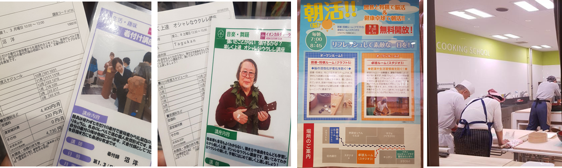 가장 인상적이었던 것은 물품이나 시설로 승부하는 것이 아니라 문화를 제공한다는 점입니다. 일종에 동호회처럼 컬처 프로그램들을 다양하게 운영하고 있습니다. 우리가 방문했을 때에 요리 수업과 운동을 즐기는 시니어가 눈에 띄었습니다. G.G몰에는 대형 서점과 함께 음악, 요리, 운동, 치과, 물리치료실, 카페, 갤러리 등을 운영합니다. 백화점 문화센터와 거의 유사하게 느껴졌습니다.