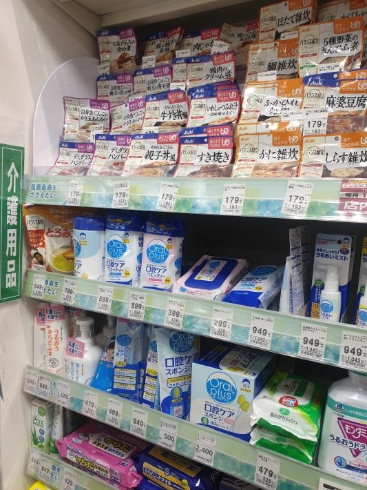 일상 속 케어푸드를 찾아 곳곳을 다녀보니 소규모 점포까지 케어푸드가 활발히 유통되지는 않음을 확인할 수 있었습니다. 하지만 중요한 인사이트를 찾을 수 있었는데요. 일본에서는 이미 케어푸드에 대한 인지도가 상당히 높다는 점입니다. 백화점 점원, 드럭 스토어 직원, 편의점 직원 모두 케어푸드에 대해 매우 잘 알고 있었다는 건 이미 그들 사회에 케어푸드는 친숙한 존재임을 나타내는 증거였습니다.