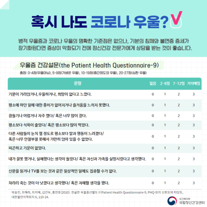 혹시 나도 코로나 우울? 자가 진단 건강 설문