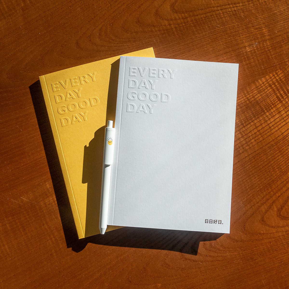 “Every Day Good Day” 라는 일일호일의 슬로건이 담긴 깔끔한 노트.
