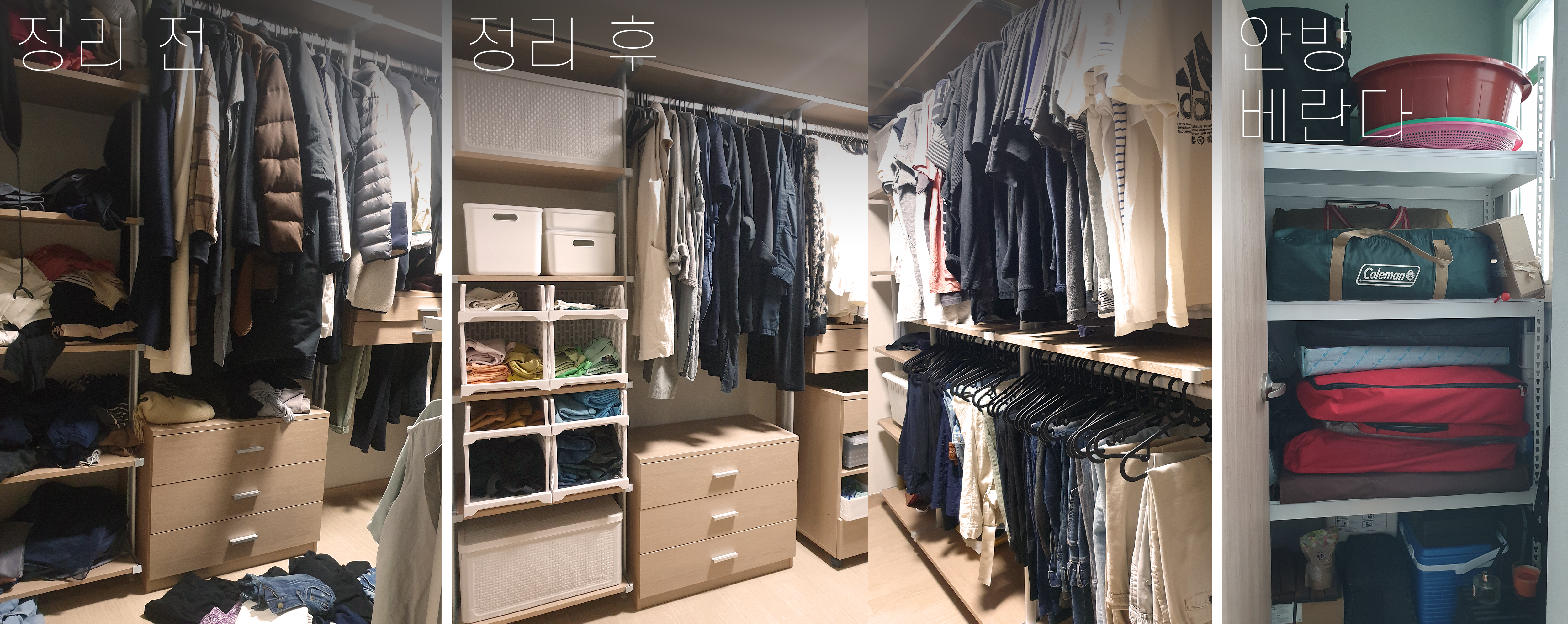 그간 바쁘다는 핑계로 미뤄뒀던 옷장과 안방 베란다를 정리하며 조금 더 효율적인 정리 정돈을 위해 정리함과 철재 선반을 구매했다. 평소 인터넷 쇼핑을 하고 싶어도 퇴근 후 대부분의 시간을 아이와 함께 하며 분주하게 보내기 때문에 온전히 물건 고르는 것에 집중할 수 없었는데 오히려 그 기간에는 격리되어 있는 것이 도움이 되더라ㅎ 그렇게 필요한 물건을 주문하고 택배가 오기만을 기다리니 상대적으로 시간이 좀 더 빨리 지나갔던 것 같다. 그렇게 남은 일주일은 저녁마다 정리 정돈을 하며 알차고 바쁘게 보내게 되었다.