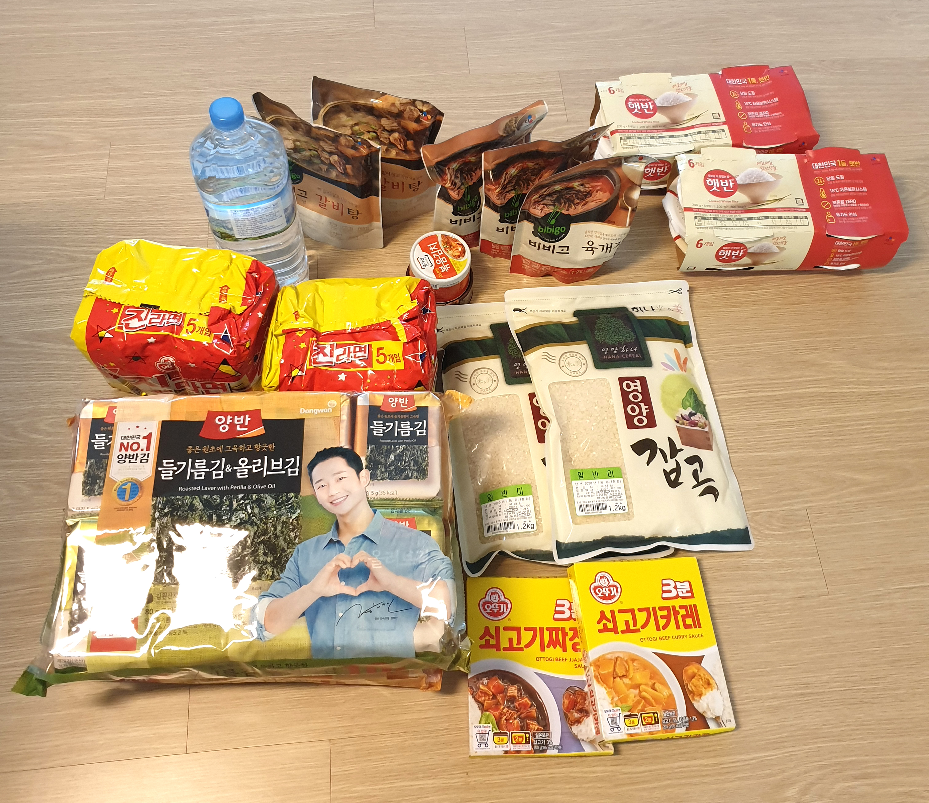 자가 격리를 하며 온 가족이 가장 궁금했던 것이 긴급 구호 물품이었다. 일주일이 지나갈 때 즈음 긴급 구호 물품이 도착했는데 그 안에는 쌀, 김, 갈비탕, 라면 등이 들어 있었다. 이미 아는 맛이고 흔히 구할 수 있는 물품이지만 꾸러미로 전달된 물품은 마치 어렸을 때 받았던 종합선물세트를 연상케 했다. 지친 일상 가운데 누군가 먹을 것을 주며 '힘들어도 먹을 것은 챙겨야지'하는 느낌이랄까? 삼시 세끼에 간식까지 챙김 받아 체중만 늘어나는 나에게 긴급하게 필요한 물품은 아니었지만 혼자 격리하며 외출도 할 수 없고 온라인으로 주문도 할 수 없는 누군가에게는 정말 필요한 생명 구호 물품이었으리라.
