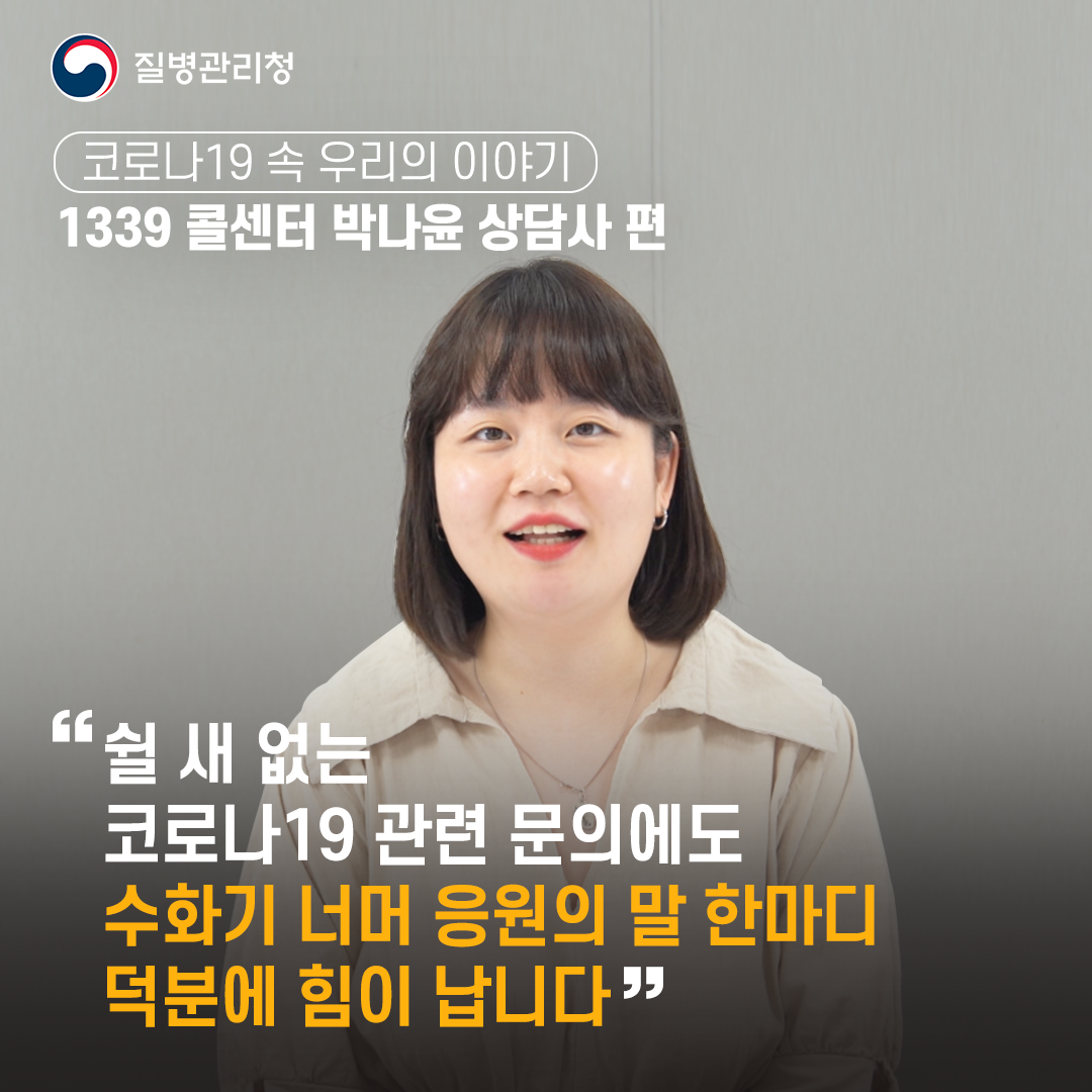 이번 캠페인의 인터뷰에는, 정말 다양한 직군과 연령의 분들이 참여하셨는데요, 선별진료소 간호사 선생님부터, 손주를 위해 방역수칙을 준수하는 60대 노부부, 1339콜센터 상담사, 어린이집 교사, 자영업자, 사회복지사, 검역관, 지역 통장, 역학조사관, 보건 교사 등이 참여하며 그야 말고 코로나 19 의 성공적인 극복을 위한 ‘우리 모두의 이야기’를 담아내고 있습니다.