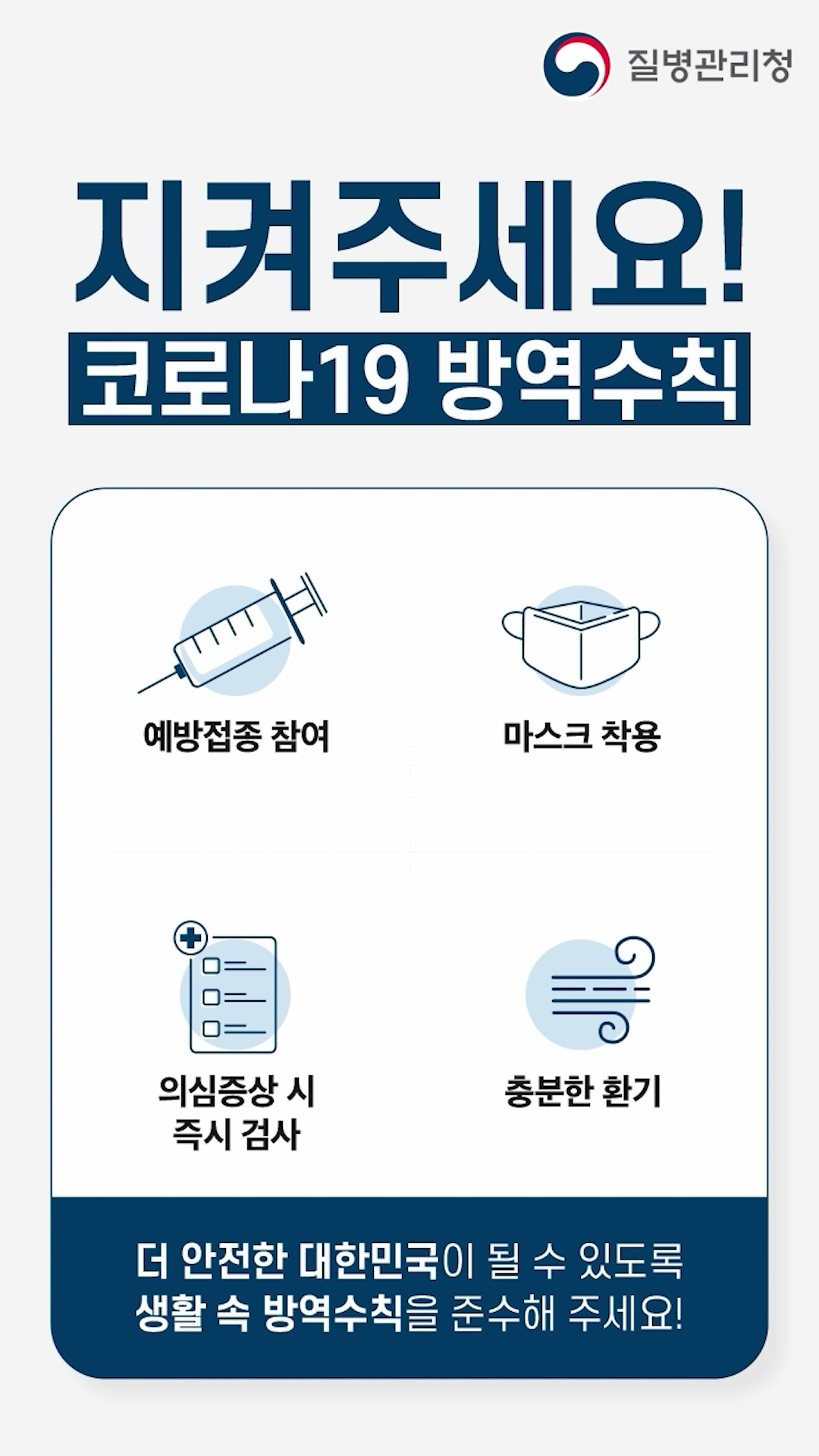 우리 모두가 각자의 자리에서 함께 가꾸어 가는 ‘코로나 19 방역’을 통해 코로나 19감염병으로부터 ‘더 안전하고 더 나은 우리의 일상’을 만들어 갈 수 있을 것이라 기대합니다.