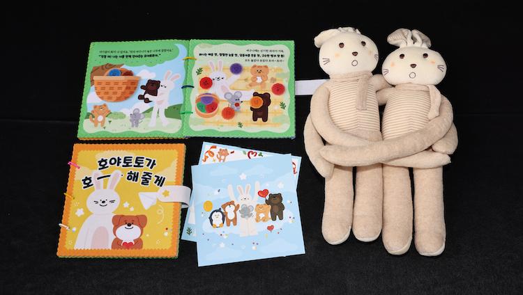 아동학대는 신체 가학행위뿐만 아니라 언어적 폭력과 방치, 무관심도 포함된다. 치료기관 등의 낯선 환경에서 아이들은 두려움을 느끼고 위축되기 쉽다. 이를 극복할 수 있도록 안정적인 환경을 제공해 주는 것 또한 중요한 치유의 시작이 될 수 있다. 오랜 기간 미술치료사로 활동한 오희정 강사는 한 내담자를 통해 아동학대에 관심을 갖게 되어 2018년, 서울 거버넌스에 ‘학대 피해 아동의 마음을 치유해 주는 서비스 디자인’을 제안하게 되었다. 각 분야 전문가와 시민의 참여로 탄생하게 된 ‘호야토토’는 18년도부터 꾸준히 업그레이드되고 있다. 5세~7세 아이들이 품에 안았을 때 가장 안정감을 느낄 수 있는 질감과 컬러의 토끼 인형인 ‘호야토토’ 인형을 시작으로 인형과 호야토토 벽지로 꾸며진 아이 전용공간을 마련해놓기도 했다. 트라우마나 실어증 극복에 효과적인 손 근육 사용을 위해 손 근육 발달에 효과적인 놀잇감을 선별해 호야토토 놀이 키트를 만들고 21년 11월엔 아이들이 스티커로 직접 이야기를 만들어갈 수 있는 형태의 헝겊책을 선보였다.