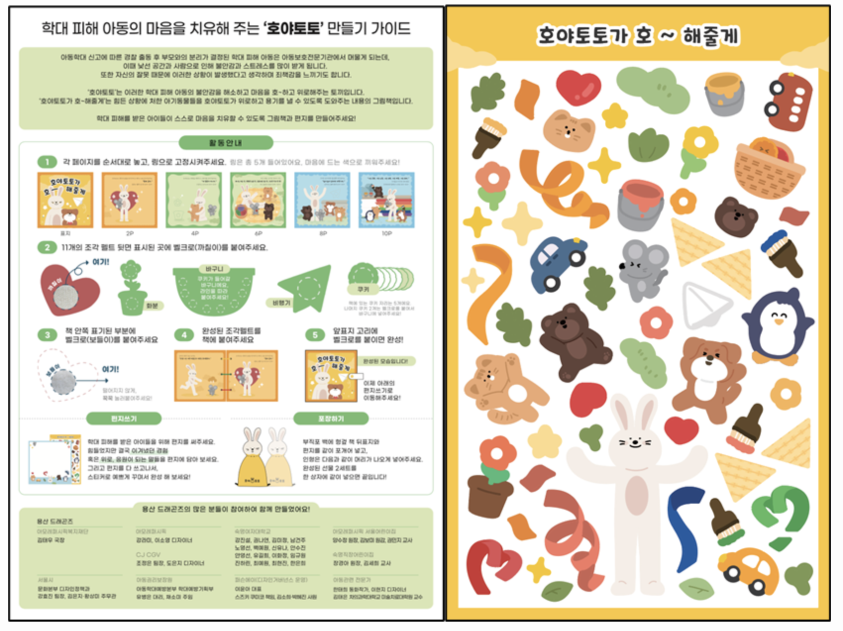 요즘 뉴스에서 학대 피해 아동 사례를 쉽게 접할 수 있다. 실제로 장기화된 코로나로 집에 머무는 시간이 늘어나면서 아동학대 발생이 증가하고 있다고 한다. 상처를 입은 아이들을 치유하기 위한 다양한 프로그램, 지원 활동이 이뤄지고 있는 가운데, 서울특별시와 디자인 거버넌스를 구축으로 용산구 소재의 봉사활동 모임인 ‘용산 드래곤즈’는 ‘호야토토’를 선보였다.