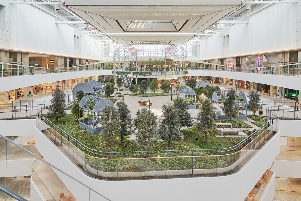 에스컬레이터를 타고 올라가면 3층에서 1층까지 폭포가 떨어지는 워터폴 가든을 지나 사운즈 포레스트가 웅장하게 펼쳐진다. 사운즈 포레스트는 ‘도심 속 숲’을 모티브로 한 1천 평 규모에 달하는 초대형 실내 정원이다. 유리 천장에서는 자연 채광이 쏟아지고, 이너존과 아우터존을 연결하는 7개의 브리지가 모이는 광장에 대형 돔과 갖가지 꽃과 나무를 배치했다. 이와 함께 새소리, 물소리 등 자연의 소리가 나오는 스피커가 설치되어 있어 실제 야외를 거니는 듯한 느낌을 준다. 쇼핑을 하다 지친 사람들은 의자에 앉아 편안하게 휴식을 즐길 수 있다.