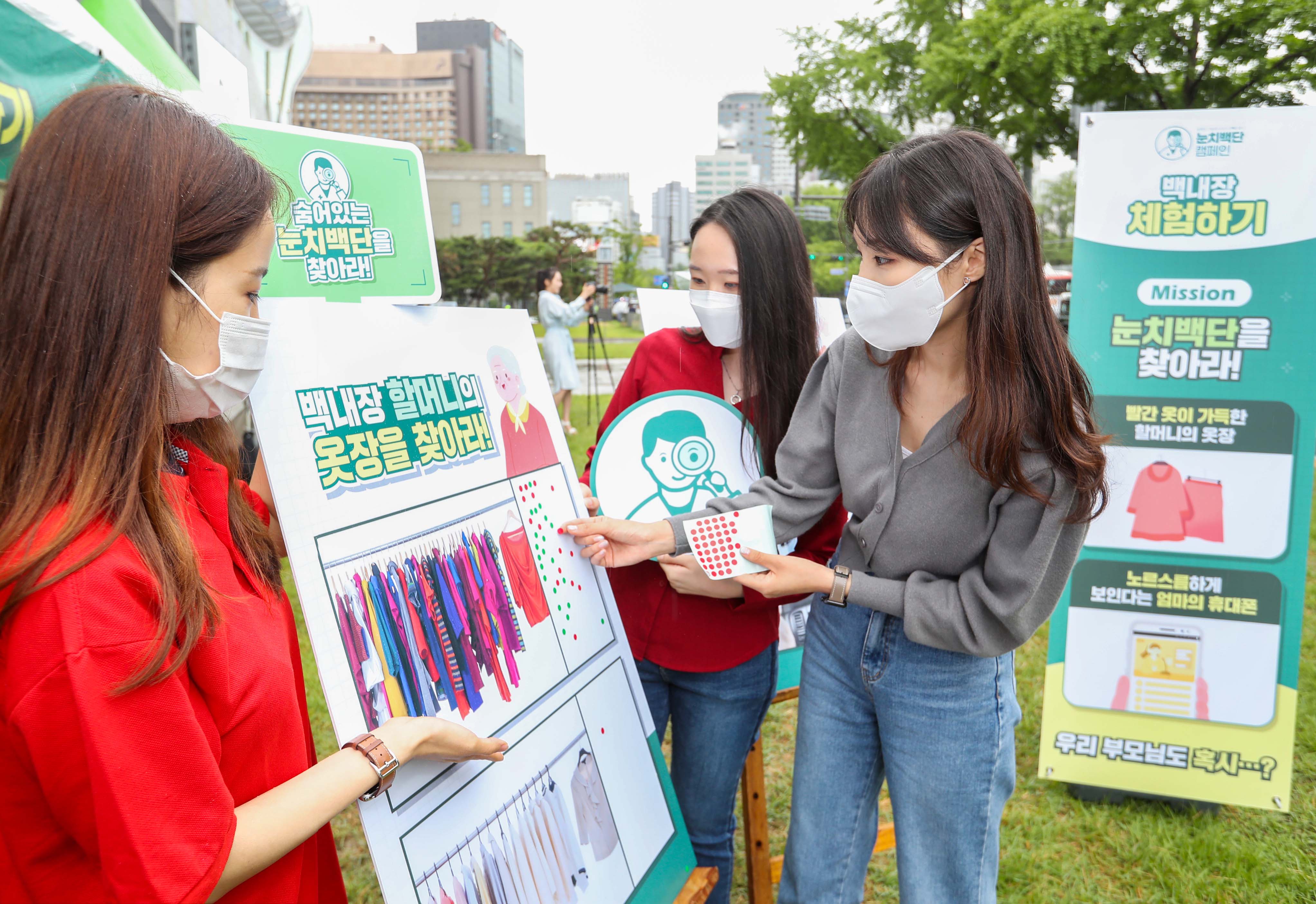 이에 존슨앤드존슨 비젼 안과 사업부는 지난 6월 15일 서울의 중심부에서 백내장 증상에 대한 인식을 높이고자 특별한 행사를 마련했습니다. 바로 '눈치백단을 찾아라!'인데요. 많은 분들이 백내장 증상을 직접 체험하고 백내장 환자의 불편함에 대해 공감할 수 있도록 준비된 프로그램입니다. 특히, 백내장 위험이 높은 50-70대 부모님의 백내장 증상을 가족들이 빠르게 눈치챌 수 있도록 하는 데 도움을 줄 수 있었습니다.