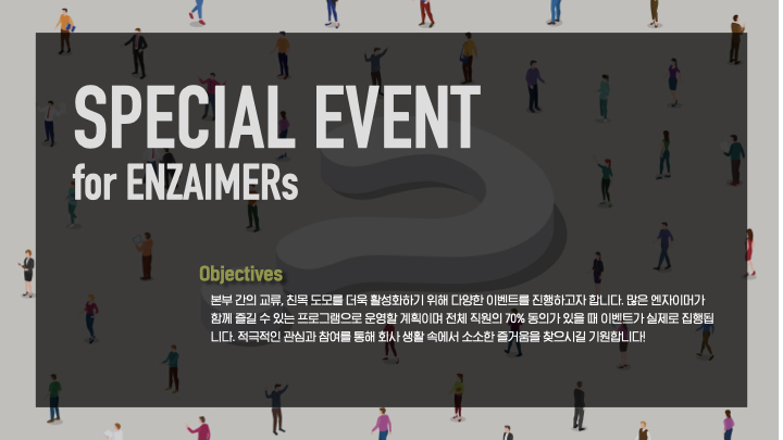 | [Enzaim Life] 따로 또 같이! 우리는 온라인으로 회식한다! (1) | 2022.03.08 |