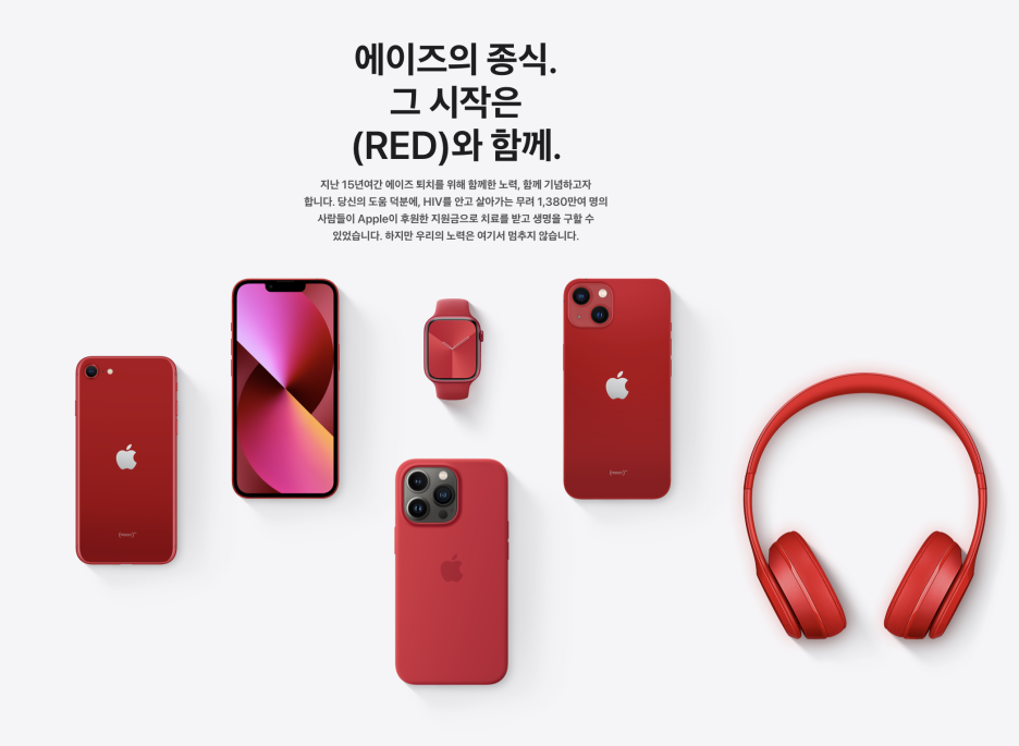 캠페인에 동참한 기업들이 만든 빨간색 제품의 수익금이 캠페인 기금이 되는 것이다. 이후 빨간색은 에이즈 캠페인을 상징하는 색이 되었고, 현재도 많은 브랜드들에서 함께하고 있다. 프로덕트 레드 프로젝트는 에이즈뿐 아니라 코로나 19 감염병 구호에도 힘쓰고 있다. 대표적으로 APPLE의 THE RED 제품이 있다. 빨간색의 아이폰, 케이스, 스포츠 밴드 등 제품명 옆에 ‘PRODUCT(RED)’라고 기재되어 있으며, 이 제품들의 판매 수익금 일부는 코로나 19 예방 및 치료를 위한 기금으로 기부된다.(https://www.apple.com/kr/product-red/)프로덕트 레드 캠페인에 동참하고 있는 브랜드들은 아래 사이트에서 확인할 수 있다. ( https://www.red.org/products)