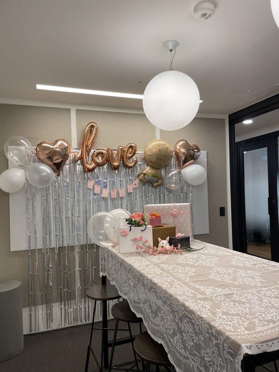 서울역 근처에는 회사가 참 많은데도 팬시 문구 점이 참 없습니다. 이런 열악한 환경(?) 속에서도 PR 본부 엔자이머들은 그간의 포토세션 경험을 십분 발휘했답니다. 번갯불에 콩볶듯 준비했지만 제법 그럴싸하지 않나요? 이 정도면 사무실이지만 베이비 샤워하는 느낌 나지 않습니까? ㅎㅎ 정말 블링블링 아기자기 러블리 합니다. 저 귀여운 인형의 디테일을 봐주십시오. 짝짝짝!!!