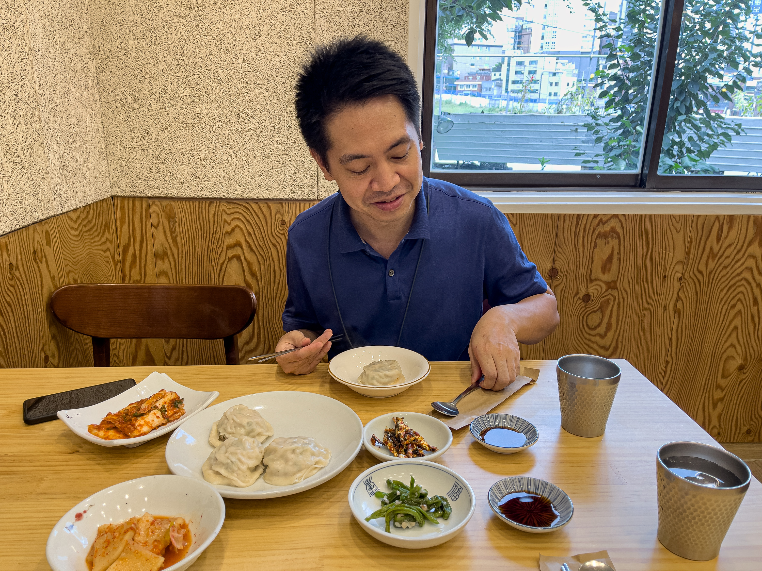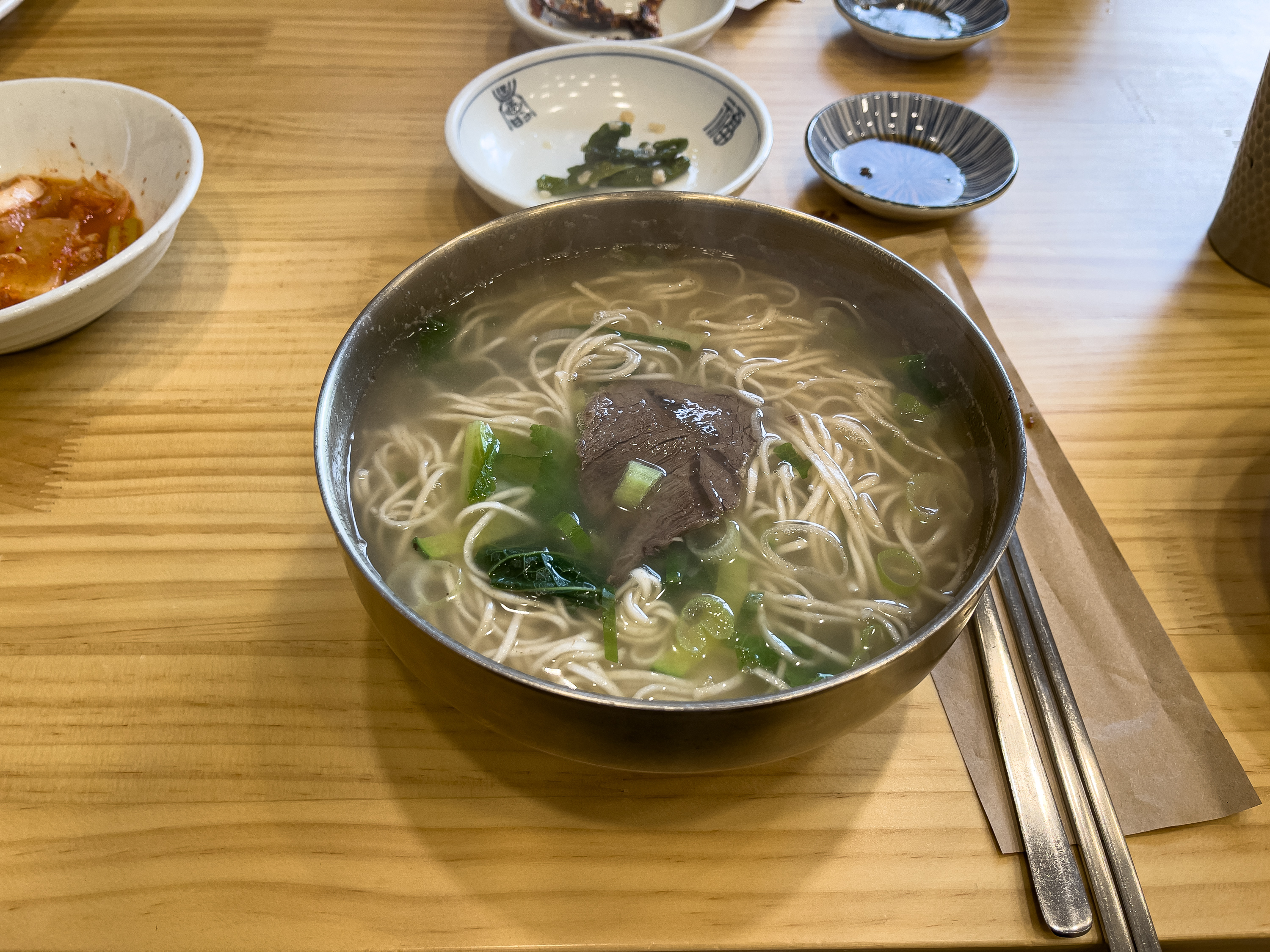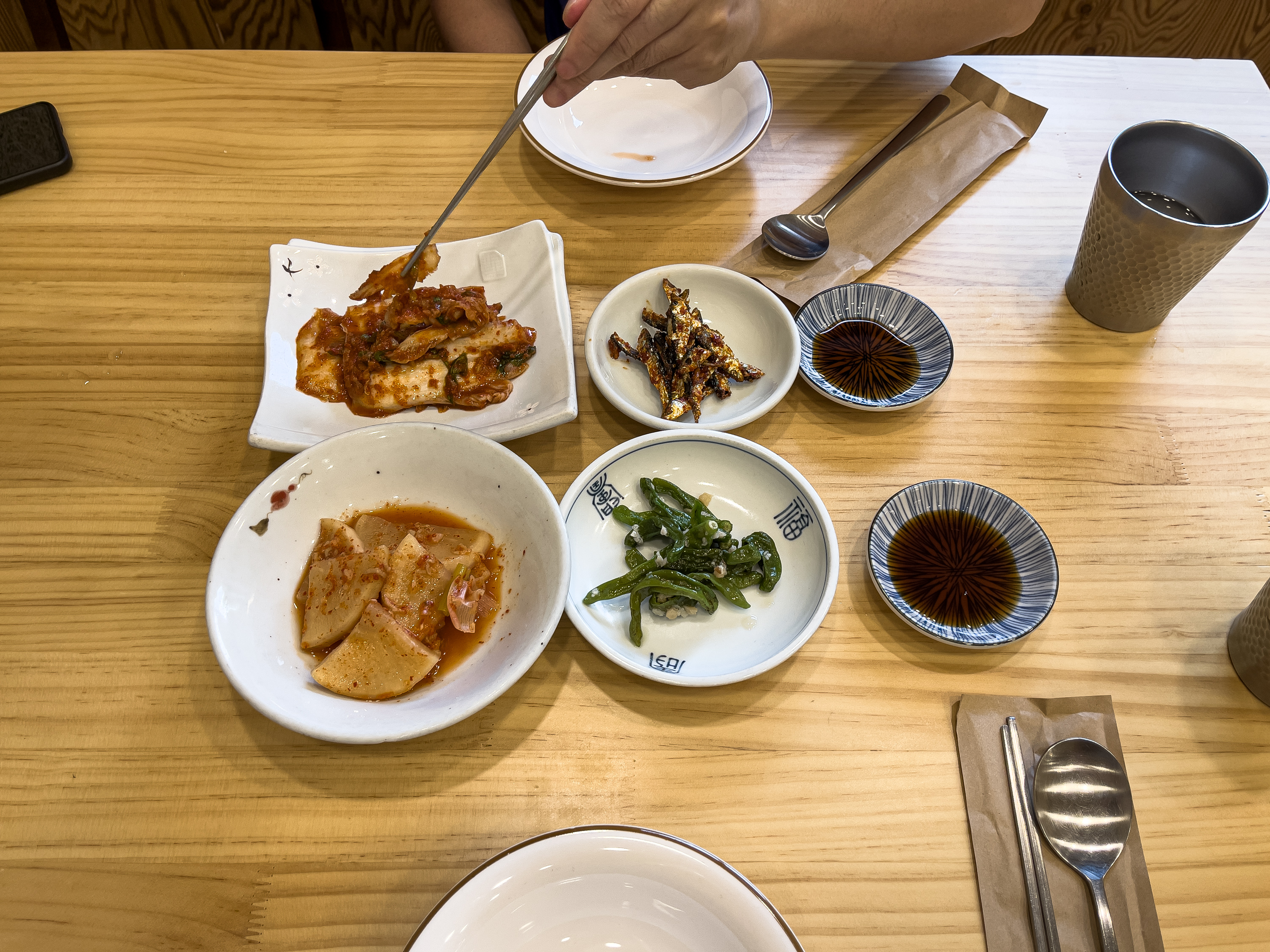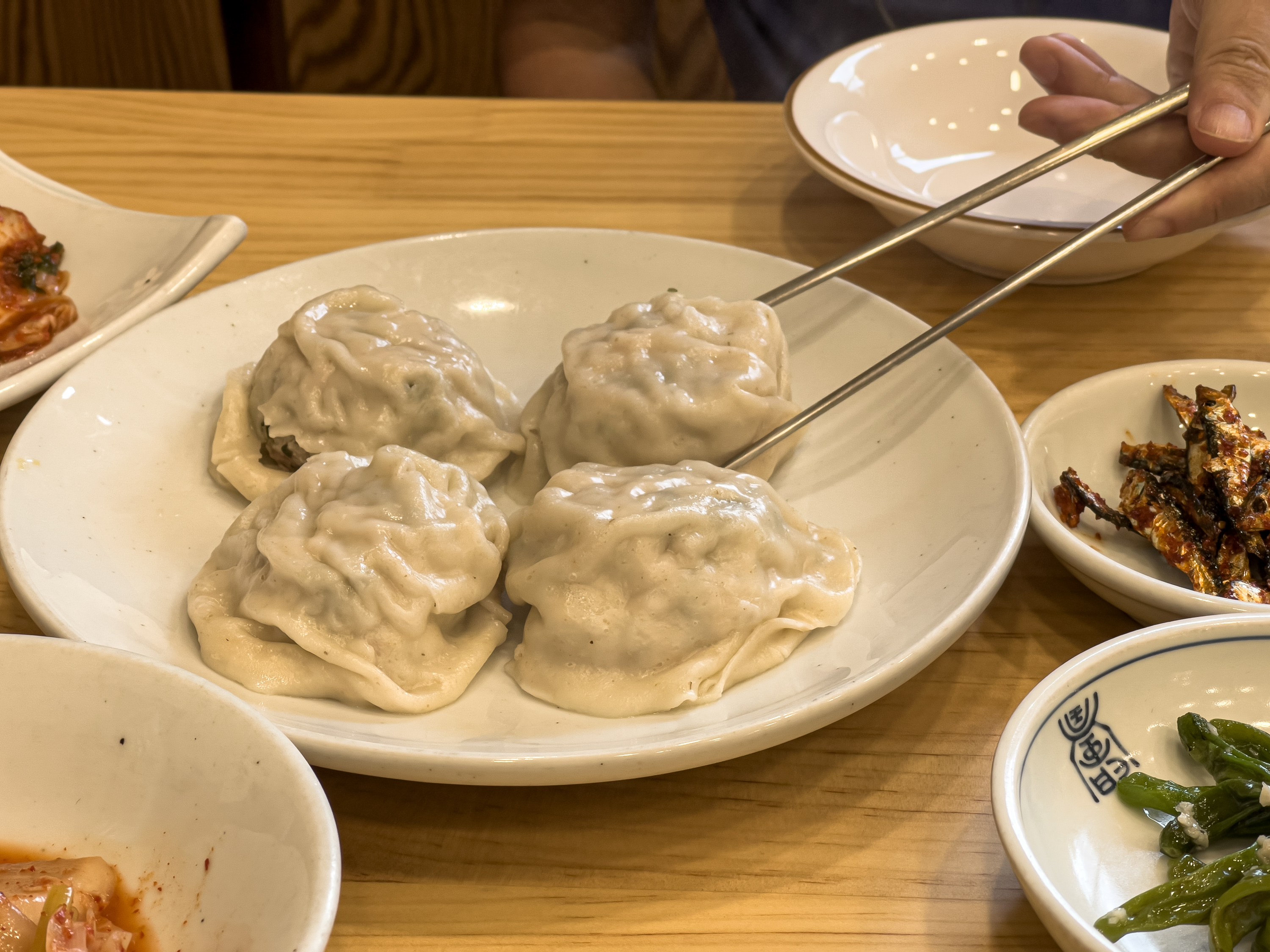 식당은 마치 예전 주택을 개조한 모습입니다. 주변에 재개발이 진행 중이라 길 찾기가 쉽지 않습니다. 저희는 우리밀로 자가제면한 국수를 한우 육수에 말은 경북 스타일 국수인 '한우제물국시'와 '접시 만두'를 주문했습니다. 음식에 앞서 반찬이 나왔는데요. 조미료 없는 아주 건강하게 맛있는 그런 맛이었습니다. 특히 김치가 특이하게 맛있더군요. 굵은 멸치 볶음도 보기와 달리 괜찮았습니다. 늘 액션팀은 반찬을 2번 이상 주문해 먹곤 하지요... 작작 먹어야 하는데...