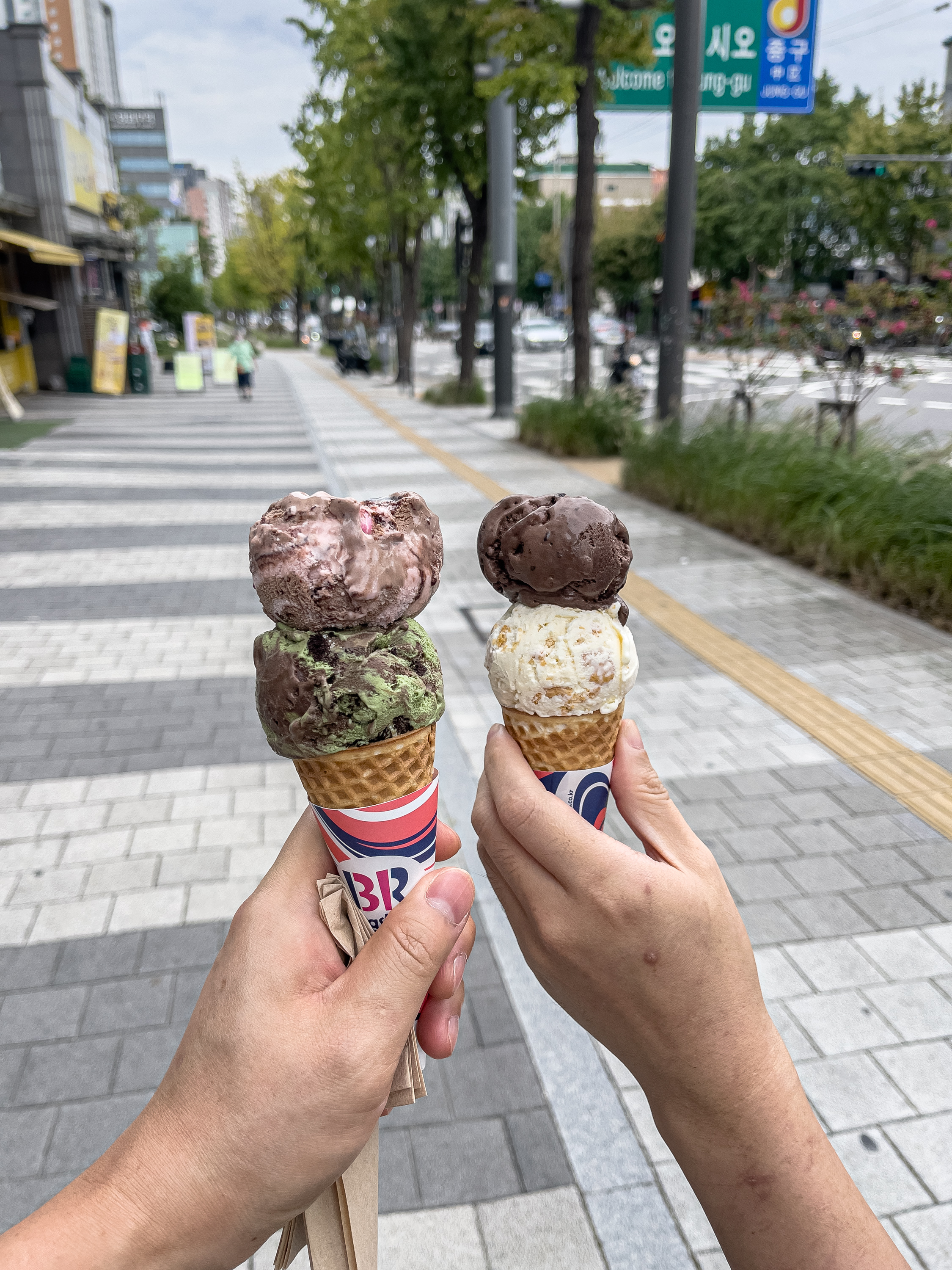 엔자임헬스의 유일한 브로맨스 조직 액션팀입니다. 둘이 다니다 보니 걷는 사진 찍기가 참으로 애매합니다. 그래서 디저트로 즐겼던 베스킨 로빈스 떠리원의 더블 주니어 브로맨스 컷으로 시작합니다. 우리도 나름 행복합니다 으흐흐